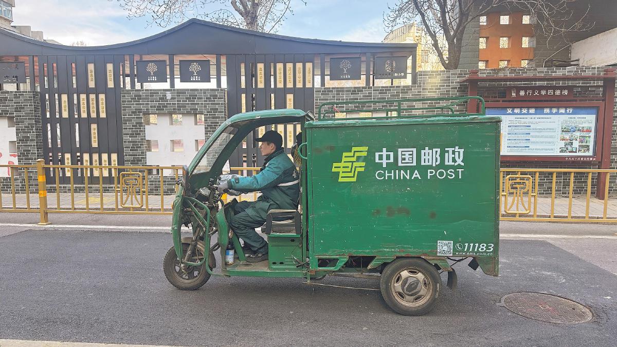 上午9点,投递员王宇跨上三轮车,驶入他再熟悉不过的青后小区。“小王!快来帮我挂一下这副春联!”才刚进小区,社区超市的李大娘就笑盈盈地招呼起来。王宇利索地停好车,踩着凳子帮李大娘把春联贴得板板正正。