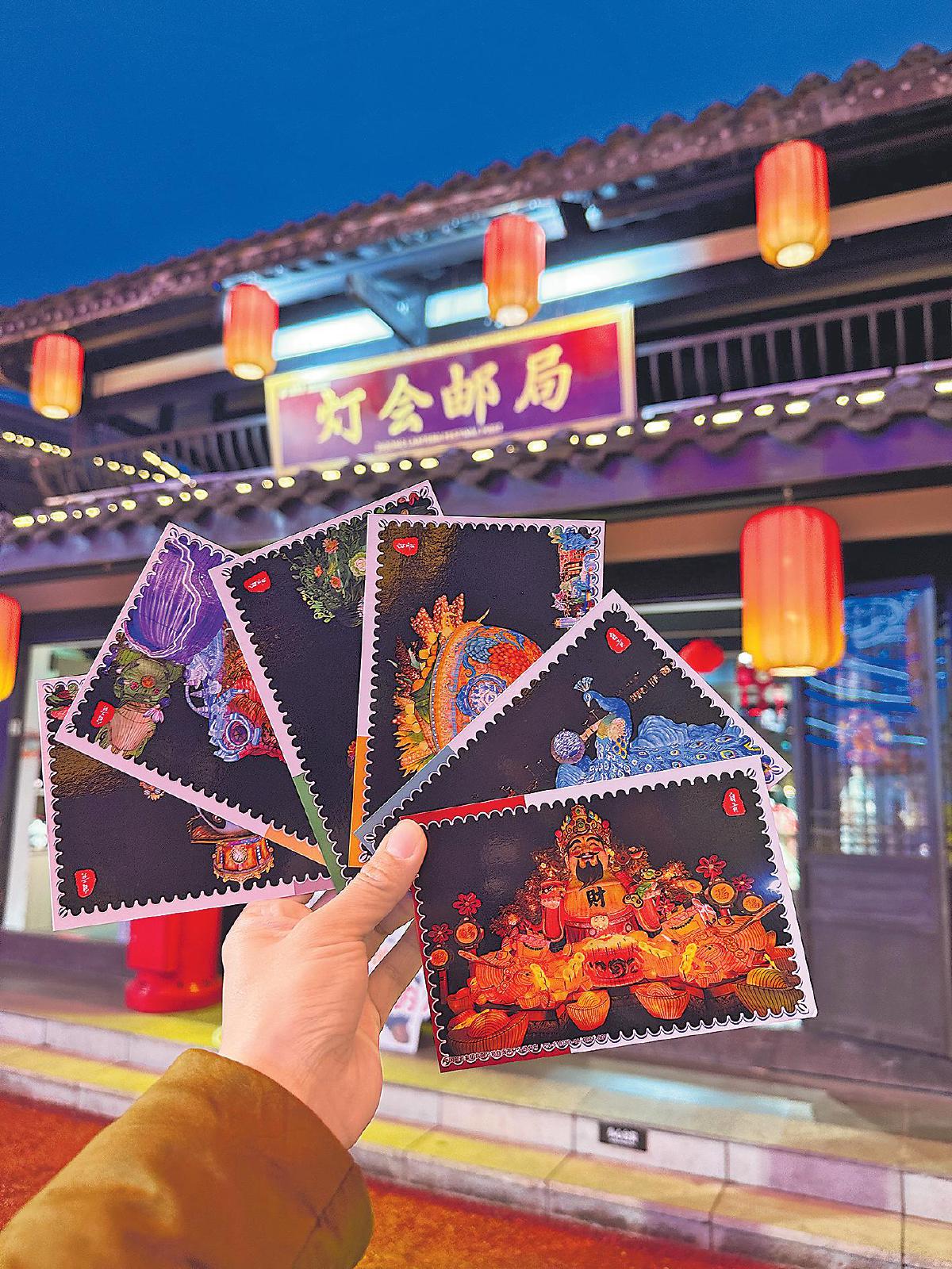 灯会邮局推出记录特色灯组的绚丽明信片。 □陈栅栅 摄