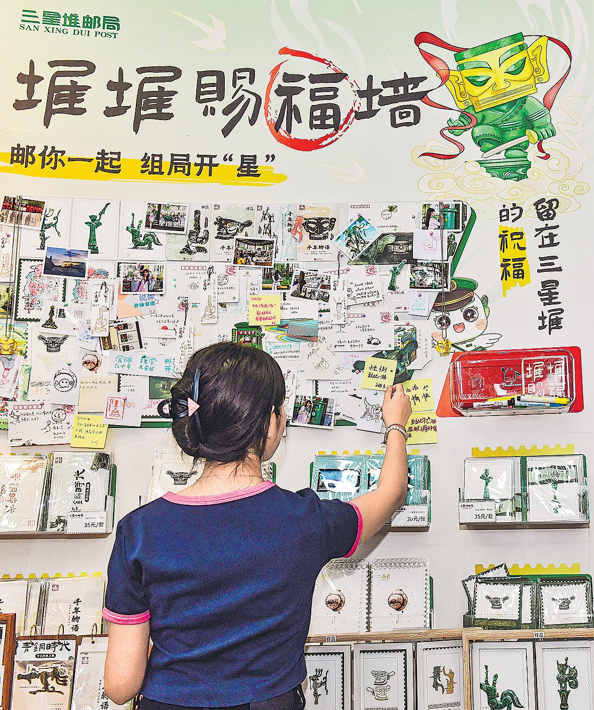 游客在三星堆邮局的“赐福墙”留下自己的祝福。 □曾祥文 摄